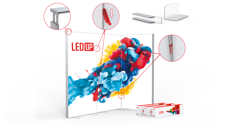• LED Messesysteme, Theken und Messewände, Textil- Spannrahmen