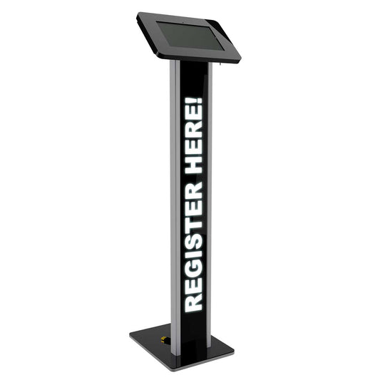 Free-standing digital information stele with multi-touch screen and Android media player, in white or black