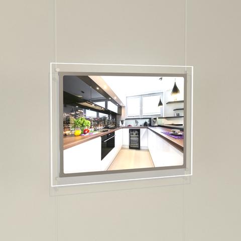 – 1, 2, or 3 DIN A2 double-sided LED acrylic poster pockets in landscape format