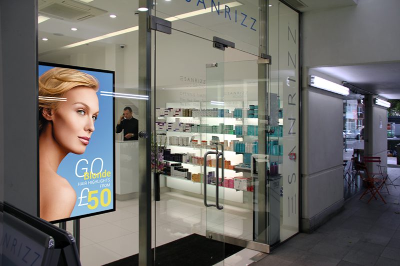 Brightness is of utmost importance when display screens in shop windows are facing outwards. These screens use 1500 cd/m² advertising monitors; More than 5 times brighter than a standard home TV to enable good readability in direct sunlight.